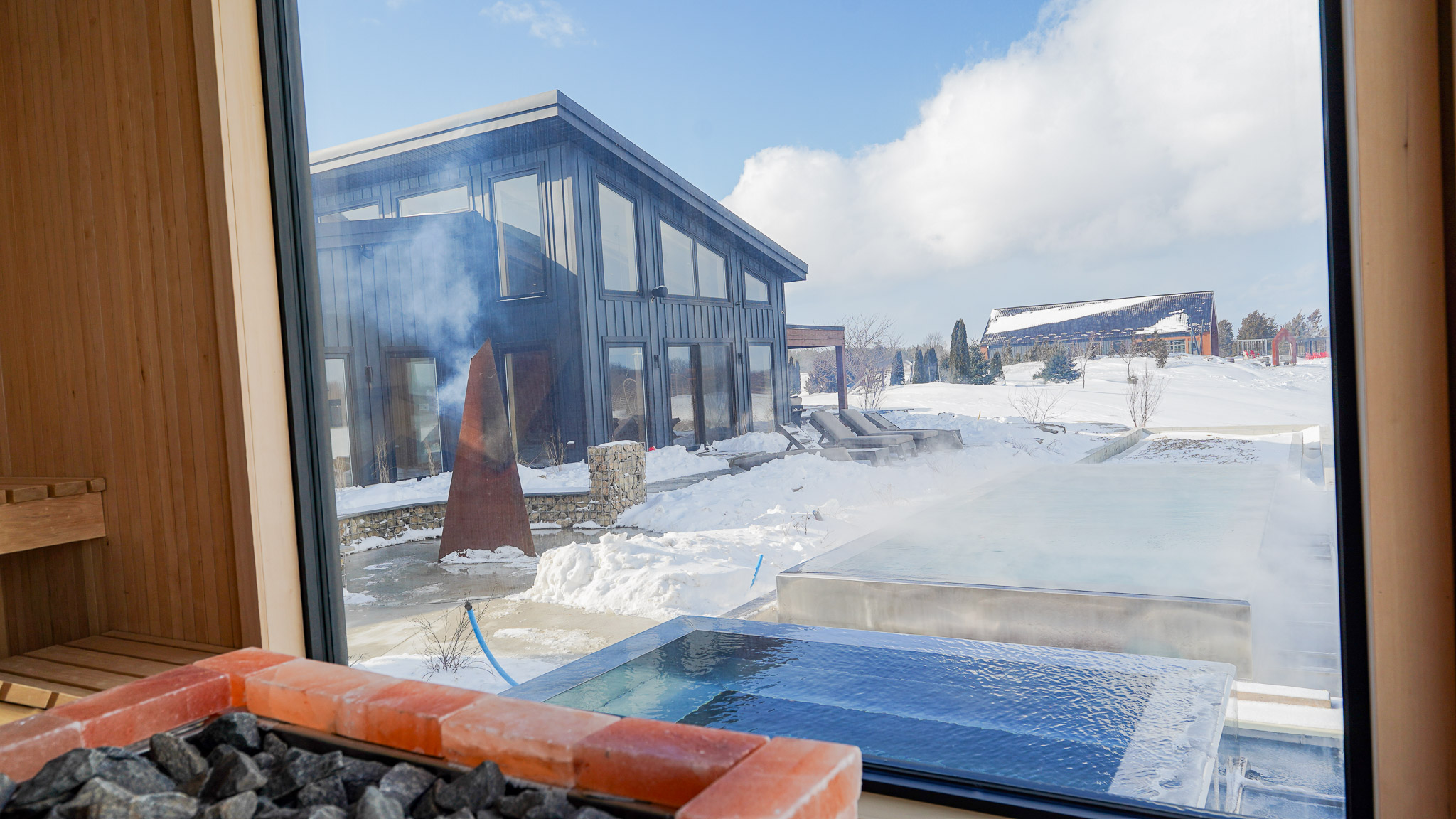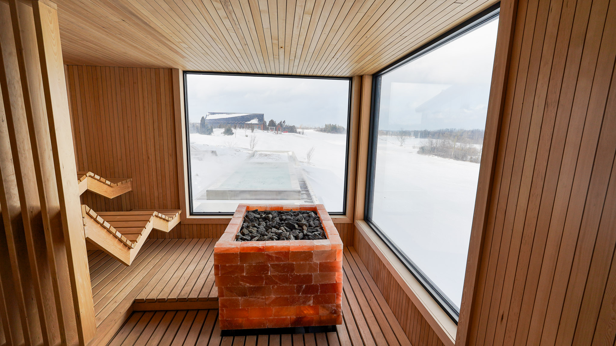 We didn’t build this to be a high-traffic destination; we built it to be a high-tranquility escape. Every hemlock board and shale stone was chosen with intention, ensuring that the architecture honours the natural landscape of the ridge. This is a space where the layout guides you through the heat, the cold, and the rest with a rhythmic ease. In a world that constantly demands your attention, we offer you the luxury of silence. Our philosophy is simple: Calm over Crowds. By limiting our bookings, we preserve the intimacy of the experience. Here, you aren’t just another guest in a facility; you are a seeker of stillness, invited to enjoy the heat of the sauna and the crispness of the air without the noise of the outside world.
